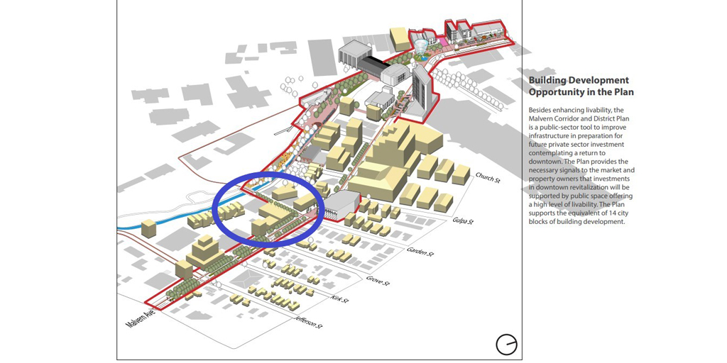 Located in planned Malvern Avenue Gateway Corridor & District